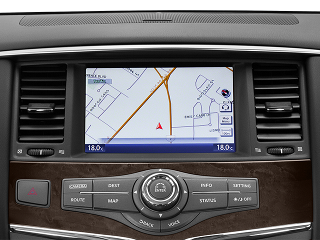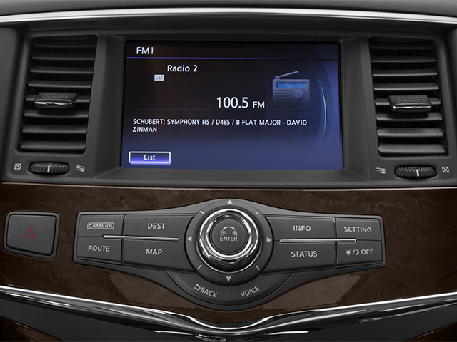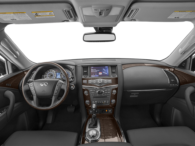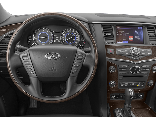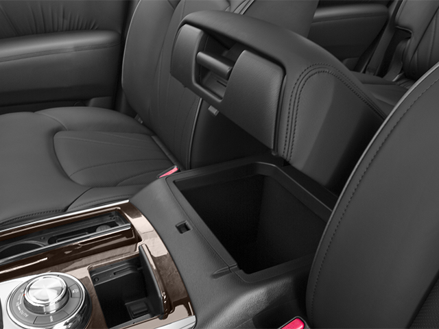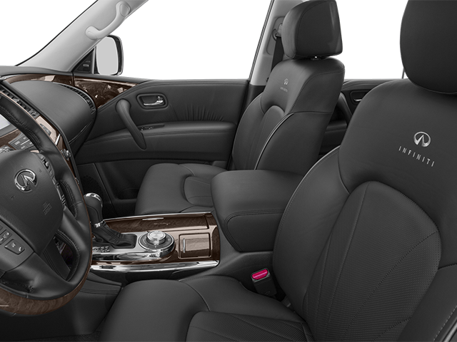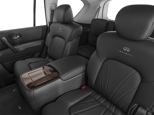 Theater Package (120V Power Outlet, Dual 7" Color Monitors, Heated 2nd-Row Seats, and Wireless Headphones (2)), 13 Speakers, 2.94 Axle Ratio, 20" 7-Spoke Aluminum Alloy Wheels, 3rd row seats: split-bench, 4-Wheel Disc Brakes, ABS brakes, Activation Disclaimer, Air Conditioning, Alloy wheels, AM/FM radio: SiriusXM, Anti-whiplash front head restraints, Auto tilt-away steering wheel, Auto-dimming door mirrors, Auto-dimming Rear-View mirror, Auto-leveling suspension, Automatic temperature control, Bose Premium Sound System, Brake assist, Bumpers: body-color, Carpeted Cargo Mat/Cargo Net & First Aid Kit, CD player, Delay-off headlights, Driver door bin, Driver vanity mirror, Dual front impact airbags, Dual front side impact airbags, Electronic Stability Control, Emergency communication system: INFINITI Connection, Four wheel independent suspension, Front anti-roll bar, Front Bucket Seats, Front Center Armrest, Front dual zone A/C, Front fog lights, Front reading lights, Fully automatic headlights, Garage door transmitter: HomeLink, Genuine wood console insert, Genuine wood dashboard insert, Genuine wood door panel insert, Heated door mirrors, Heated Front Bucket Seats, Heated front seats, Heated steering wheel, High intensity discharge headlights: Bi-Xenon, Illuminated entry, Illuminated Kick Plates, Leather Shift Knob, Leather steering wheel, Leather-Appointed Seat Trim w/Tuscan Burl, Literature Kit, Low tire pressure warning, Memory seat, Navigation System, Occupant sensing airbag, Outside temperature display, Overhead airbag, Overhead console, Panic alarm, Passenger door bin, Passenger vanity mirror, Power door mirrors, Power driver seat, Power Liftgate, Power moonroof, Power passenger seat, Power steering, Power windows, Radio data system, Rain sensing wipers, Rear air conditioning, Rear anti-roll bar, Rear audio controls, Rear reading lights, Rear seat center armrest, Rear window defroster, Rear window wiper, Reclining 3rd row seat, Remote keyless entry, Roof rack: rails only, Roof Rail Crossbars, Security system, Speed control, Speed-sensing steering, Split folding rear seat, Spoiler, Stainless Steel Rear Bumper Protector, Steering wheel memory, Steering wheel mounted audio controls, Tachometer, Telescoping steering wheel, Tilt steering wheel, Traction control, Trip computer, Turn signal indicator mirrors, Variably intermittent wipers, and Voltmeter. Recent Arrival!