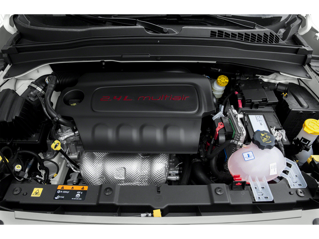 Quick Order Package 27G, 18" x 7.0" Aluminum Wheels, 3.734 Axle Ratio, 4-Wheel Disc Brakes, 6 Speakers, ABS brakes, Air Conditioning, Alloy wheels, AM/FM radio: SiriusXM, Anti-whiplash front head restraints, Auto-dimming Rear-View mirror, Automatic temperature control, Brake assist, Compass, Delay-off headlights, Driver door bin, Driver vanity mirror, Dual front impact airbags, Dual front side impact airbags, Electronic Stability Control, Engine Oil Cooler, Flex Fuel Vehicle, Four wheel independent suspension, Front anti-roll bar, Front Bucket Seats, Front Center Armrest, Front dual zone A/C, Front fog lights, Front reading lights, Fully automatic headlights, Heated door mirrors, Heated front seats, Heated steering wheel, Illuminated entry, Knee airbag, Leather Shift Knob, Leather steering wheel, Leather Trimmed Bucket Seats, Low tire pressure warning, Normal Duty Suspension, Occupant sensing airbag, Outside temperature display, Overhead airbag, Overhead console, Panic alarm, ParkView Rear Back-Up Camera, Passenger door bin, Passenger vanity mirror, Passive Entry/Keyless Go, Power door mirrors, Power driver seat, Power steering, Power windows, Radio data system, Radio: Uconnect 5.0 AM/FM/BT, Rear anti-roll bar, Rear reading lights, Rear seat center armrest, Rear window defroster, Rear window wiper, Remote keyless entry, Remote Start System, Roof rack: rails only, Speed control, Split folding rear seat, Spoiler, Steering wheel mounted audio controls, Tachometer, Telescoping steering wheel, Tilt steering wheel, Traction control, Trip computer, Turn signal indicator mirrors, Variably intermittent wipers, and Voltmeter. 22/31 City/Highway MPG