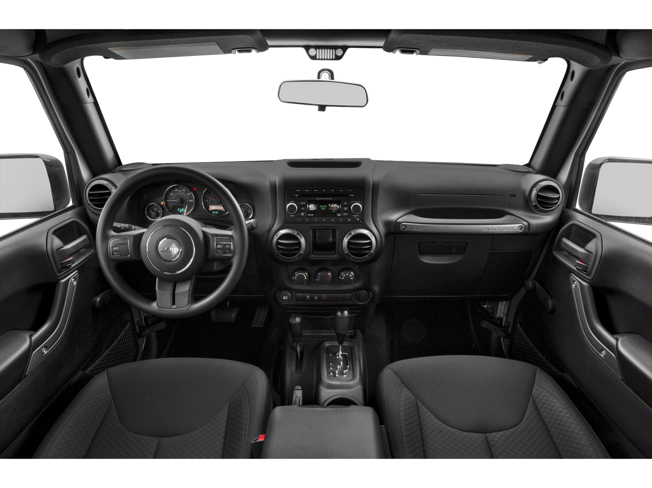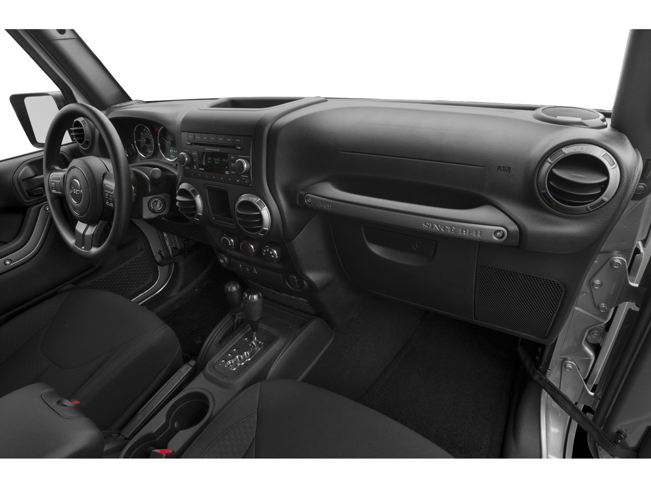 Connectivity Group (Tire Pressure Monitoring Display, Uconnect Voice Command w/Bluetooth®, and Vehicle Information Center), Power Convenience Group (Auto-Dimming Mirror w/Reading Lamp, Front 1-Touch Down Power Windows, Power Heated Mirrors, Power Locks, Remote Keyless Entry, and Security Alarm), Quick Order Package 23K Willys Wheeler (1-Yr SIRIUSXM Radio Service, 4-Wheel Drive Swing Gate Decal, Anti-Spin Differential Rear Axle, Black Jeep Grille Badge, Deep Tint Sunscreen Windows, Low Gloss Black Wrangler Decal, MOPAR Dealer Installed Tow Strap Kit, MOPAR Slush Mats, Performance Suspension, Rear Passenger Assist Handles Kit, SIRIUS Satellite Radio, Wheels: 17" x 7.5" High Gloss Black Willys, Willys Hood Decal, and Willys Wheeler Grille), Quick Order Package 24W Willys Wheeler (Air Conditioning), Willys Wheeler Package, 16" x 7.0" Luxury Styled Steel Wheels, 4-Wheel Disc Brakes, 8 Speakers, ABS brakes, AM/FM radio, Black 3-Piece Hard Top, Brake assist, CD player, Cloth Bucket Seats, Compass, Delete Sunrider Soft Top, Driver door bin, Driver vanity mirror, Dual front impact airbags, Electronic Stability Control, Freedom Panel Storage Bag, Freedom Top Hard Top Headliner, Front anti-roll bar, Front Bucket Seats, Front Center Armrest w/Storage, Front fog lights, Integrated roll-over protection, Low tire pressure warning, Manufacturer's Statement of Origin, Normal Duty Suspension, Occupant sensing airbag, Outside temperature display, Passenger door bin, Passenger vanity mirror, Power steering, Radio: Uconnect 130 AM/FM/CD/MP3, Radio: Uconnect 430 CD/DVD/MP3/HDD, Rear anti-roll bar, Rear Window Defroster, Rear Window Wiper/Washer, Remote USB Port, Speed control, Steering wheel mounted audio controls, Sunrider Soft Top, Tachometer, Tilt steering wheel, Tinted Rear Quarter & Liftgate Windows, Traction control, Trip computer, and Variably intermittent wipers. Recent Arrival!