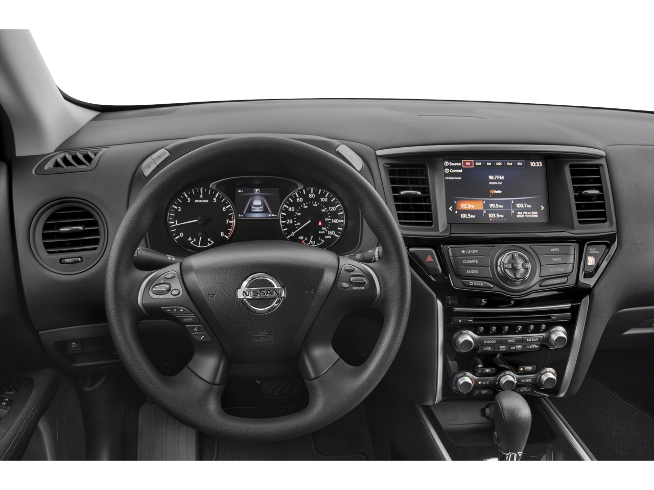3rd row seats: bench, 4-Wheel Disc Brakes, 5.25 Axle Ratio, 6 Speakers, ABS brakes, Air Conditioning, Alloy wheels, AM/FM radio: SiriusXM, Automatic temperature control, Black Mold-in-Color Splash Guards, Brake assist, Bumpers: body-color, Carpeted Floor Mats (4-pc Set), CD player, Cloth Seating Surfaces, Cross Bars, Delay-off headlights, Driver door bin, Driver vanity mirror, Dual front impact airbags, Dual front side impact airbags, Electronic Stability Control, Four wheel independent suspension, Front anti-roll bar, Front Bucket Seats, Front Center Armrest, Front dual zone A/C, Front reading lights, Illuminated entry, Low tire pressure warning, Occupant sensing airbag, Outside temperature display, Overhead airbag, Overhead console, Panic alarm, Passenger door bin, Passenger vanity mirror, Power door mirrors, Power steering, Power windows, Radio data system, Radio: AM/FM/CD Audio System w/NissanConnect, Rear air conditioning, Rear anti-roll bar, Rear Parking Sensors, Rear reading lights, Rear seat center armrest, Rear window defroster, Rear window wiper, Reclining 3rd row seat, Remote keyless entry, Roof rack: rails only, Security system, Speed control, Speed-sensing steering, Split folding rear seat, Spoiler, Steering wheel mounted audio controls, Tachometer, Telescoping steering wheel, Tilt steering wheel, Traction control, Trip computer, Turn signal indicator mirrors, Variably intermittent wipers, and Wheels: 18" x 7.5 J Machined Aluminum-Alloy. Recent Arrival! 20/27 City/Highway MPG