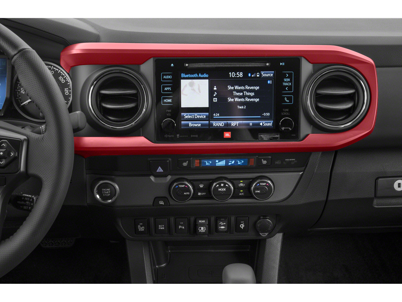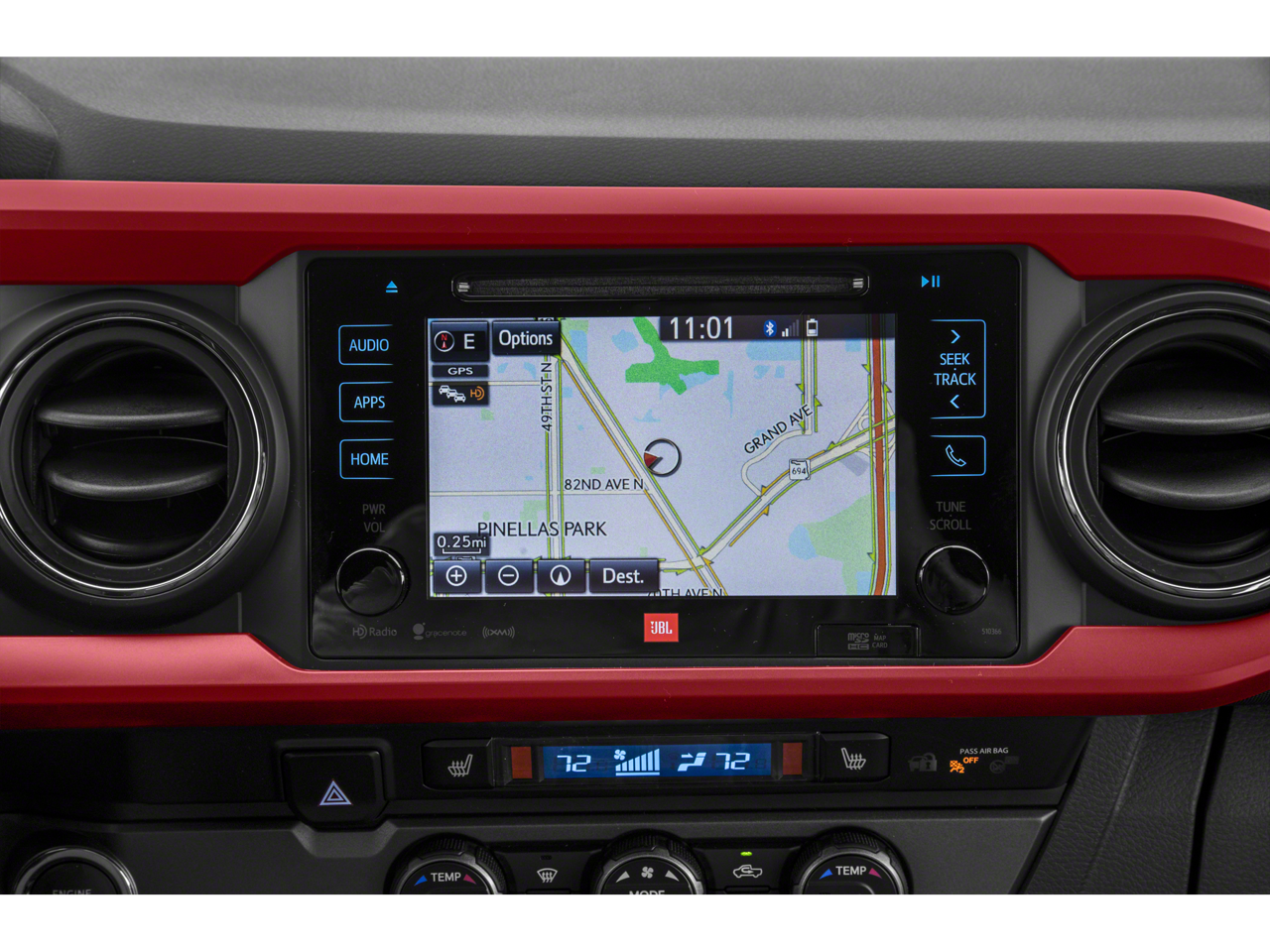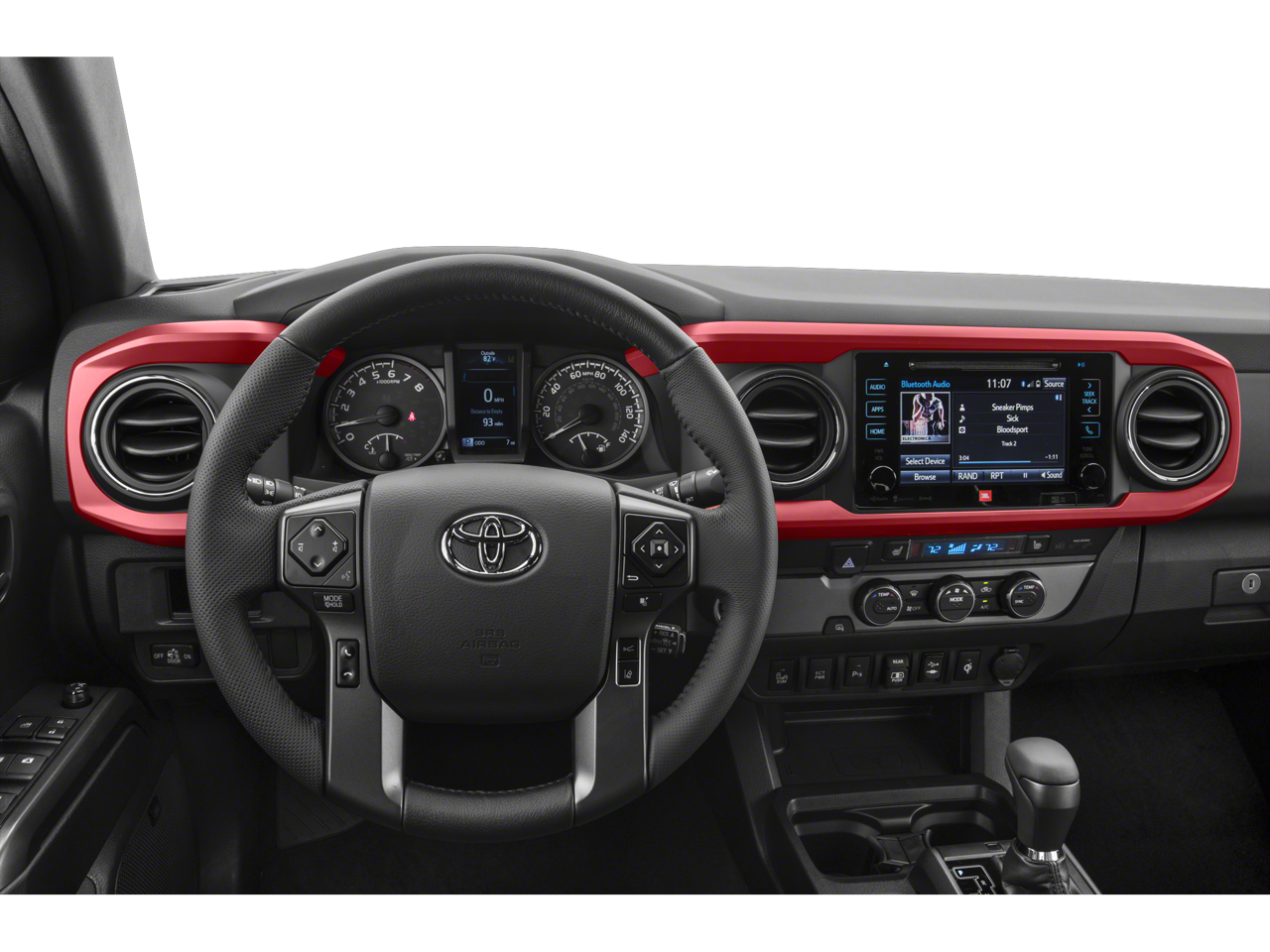 Technology Package (Blind Spot Monitor w/Rear Cross Traffic Alert and Rear Parking Assist Sonar), TRD Sport Package (120V/400W Deck Mounted AC Power, Auto-Dimming Inside Rear-View Mirror w/Compass, Color Keyed Rear Bumper, Engine Immobilizer, LED Daytime Running Lamps, Smart Key w/Push Button Start, and Wide Angle Front Fog Lamps), 6 Speakers, ABS brakes, Air Conditioning, Alloy wheels, AM/FM radio: SiriusXM, Anti-whiplash front head restraints, Auto High-beam Headlights, Auto-dimming Rear-View mirror, Axle Ratio: 3.91, Brake assist, Bumpers: body-color, CD player, Driver door bin, Dual front impact airbags, Dual front side impact airbags, Electronic Stability Control, Exterior Parking Camera Rear, Fabric Seat Trim (FD), Front anti-roll bar, Front Bucket Seats, Front Center Armrest, Front fog lights, Front reading lights, Front wheel independent suspension, Illuminated entry, Knee airbag, Leather Seat Trim, Leather Shift Knob, Low tire pressure warning, Navigation System, Occupant sensing airbag, Outside temperature display, Overhead airbag, Overhead console, Panic alarm, Passenger door bin, Power door mirrors, Power steering, Power windows, Radio: Entune Premium JBL AM/FM/CD w/Nav & App Ste, Radio: Entune Premium w/AM/FM/CD/Nav/App Suite, Rear step bumper, Remote keyless entry, Security system, Speed control, Speed-sensing steering, Split folding rear seat, Steering wheel mounted audio controls, Tachometer, Telescoping steering wheel, Tilt steering wheel, Traction control, Trip computer, Turn signal indicator mirrors, Variably intermittent wipers, and Wheels: 17" x 7.5" Machined Alloy. Recent Arrival!