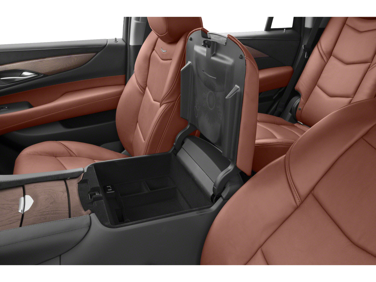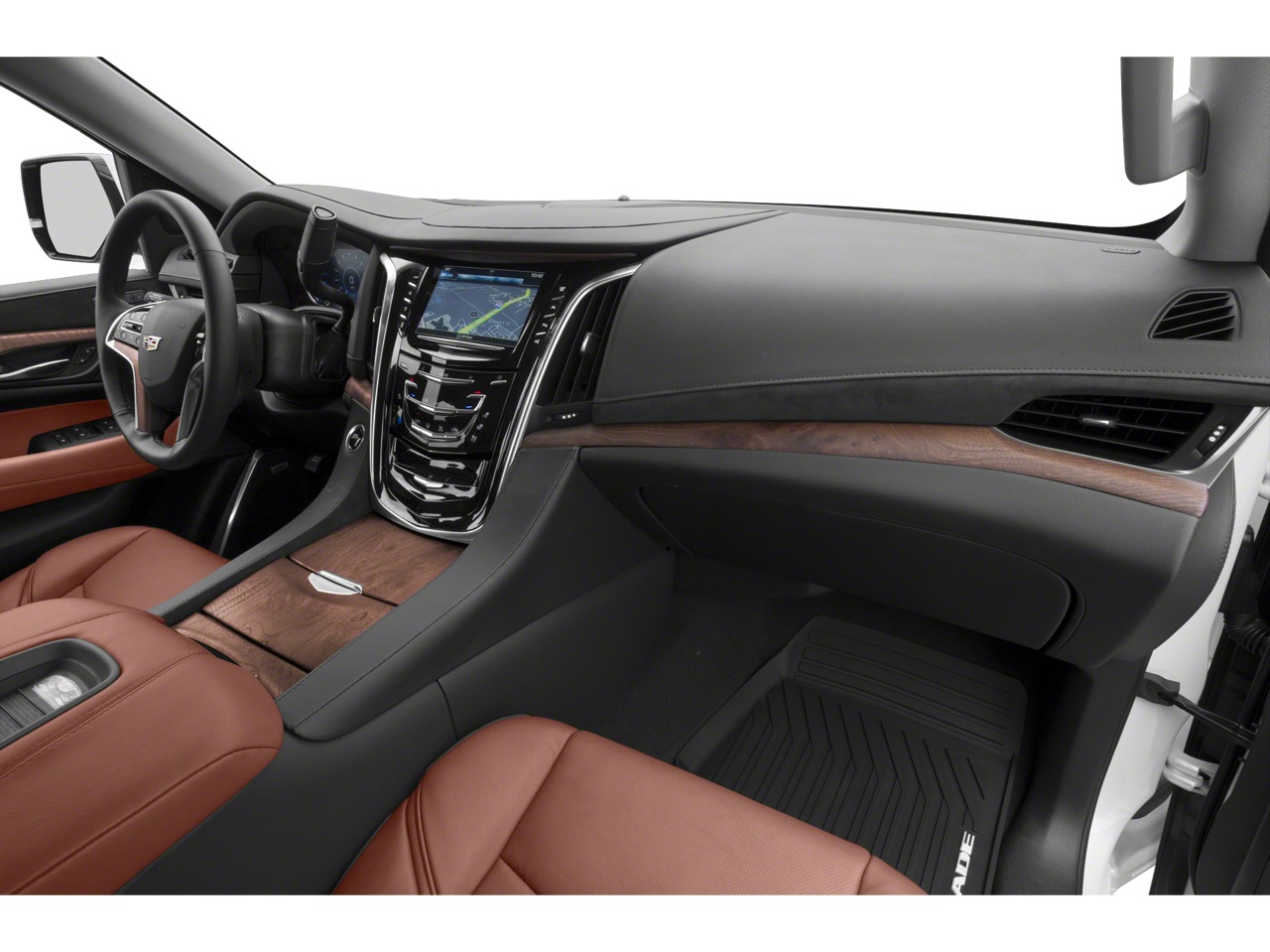 Driver Awareness Package (Automatic Emergency Braking, Forward Collision Alert, IntelliBeam Automatic High Beam On/Off, Lane Change Alert w/Side Blind Zone Alert, Lane Keep Assist w/Lane Departure Warning, Rear Cross Traffic Alert, and Safety Alert Seat), Preferred Equipment Group 1SB (Power Configurable Second Row Bucket Seats, Power Tilt-Sliding Sunroof w/Express-Open/Close, Rear Camera Mirror, Rear Camera Mirror Washer, and Reconfigurable 4-Color Head-Up Display), Theft-Deterrent Package (Inclination Sensor, Theft-Deterrent Alarm System, and Vehicle Interior Movement Sensor), Shale With Jet Black Accents Leather, 12-Way Power Front Passenger Seat Adjuster, 16 Speakers, 2-Presets Memory For Driver Seat Adjuster, 3.23 Axle Ratio, 3rd row seats: split-bench, 4-Wheel Disc Brakes, ABS brakes, Adaptive suspension, Adjustable pedals, Air Conditioning, All-Weather Floor Liner (LPO), Alloy wheels, AM/FM radio: SiriusXM, Apple CarPlay/Android Auto, Auto High-beam Headlights, Auto tilt-away steering wheel, Auto-dimming door mirrors, Auto-dimming Rear-View mirror, Auto-leveling suspension, Automatic temperature control, Bodyside moldings, Bose Centerpoint 16 Speaker Surround Sound System, Brake assist, Bumpers: body-color, CD player, Compass, Delay-off headlights, Driver door bin, Driver vanity mirror, Dual front impact airbags, Dual front side impact airbags, DVD-Audio, Electronic Stability Control, Emergency communication system: OnStar and Cadillac connected services capable, Exterior Parking Camera Rear, Front anti-roll bar, Front Bucket Seats, Front Center Armrest w/Storage, Front dual zone A/C, Front reading lights, Front wheel independent suspension, Fully automatic headlights, Garage door transmitter, HD Radio, Heads-Up Display, Heated & Cooled Driver & Front Passenger Seats, Heated door mirrors, Heated front seats, Heated rear seats, Heated steering wheel, Illuminated entry, Leather Seating Surfaces, Leather Shift Knob, Leather steering wheel, Low tire pressure warning, Magnetic Ride Control Suspension, Memory seat, Navigation System, Occupant sensing airbag, Outside temperature display, Overhead airbag, Overhead console, Panic alarm, Passenger door bin, Passenger vanity mirror, Pedal memory, Polished Exhaust Tip, Power door mirrors, Power driver seat, Power Liftgate, Power moonroof, Power passenger seat, Power steering, Power windows, Radio data system, Radio: AM/FM Cadillac User Experience w/Nav, Rain sensing wipers, Rear air conditioning, Rear anti-roll bar, Rear audio controls, Rear reading lights, Rear Seat Entertainment System, Rear window defroster, Rear window wiper, Remote keyless entry, Security system, Single Slot CD/MP3 Player, SiriusXM NavTraffic, SiriusXM Radio, Speed control, Split folding rear seat, Spoiler, Steering wheel memory, Steering wheel mounted audio controls, Tachometer, Telescoping steering wheel, Tilt steering wheel, Traction control, Trip computer, Turn signal indicator mirrors, Variably intermittent wipers, Ventilated front seats, Wheel Locks, and Wheels: 22" x 9" 7-Spoke Alloy w/Chrome Inserts.
