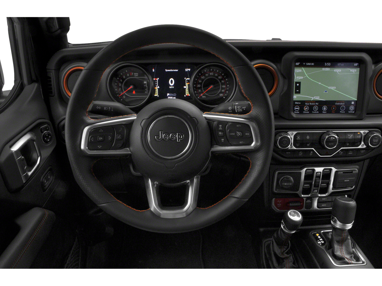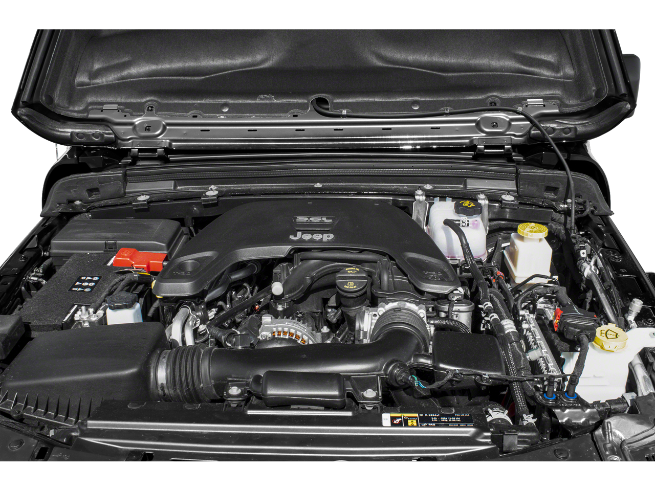 8.4" Radio & Premium Audio Group (1-Year SiriusXM Guardian Trial, 5-Year SiriusXM Traffic Service, 5-Year SiriusXM Travel Link Service, 8.4" Touchscreen Display, Alpine Premium Audio System, Auto-Dimming Rear-View Mirror, Emergency/Assistance Call, For Details, Visit DriveUconnect.com, GPS Navigation, HD Radio, Radio: Uconnect 4C Nav w/8.4" Display, SiriusXM Traffic Plus, and SiriusXM Travel Link), Auxiliary Switch Group (240 Amp Alternator, 700 Amp Maintenance Free Battery, and Auxiliary Switches), Cold Weather Group (Heated Front Seats and Heated Steering Wheel), LED Lighting Group (Daytime Running Lamps LED Accents, Front LED Fog Lamps, LED Park Turn Lamps, LED Premium Reflector Headlamps, and LED Taillamps), Quick Order Package 24D, Trailer Tow Package (Class IV Hitch Receiver, Heavy-Duty Engine Cooling, and Trailer Hitch Zoom), 4-Wheel Disc Brakes, 4.10 Rear Axle Ratio, 8 Speakers, 97 mph Maximum Speed Calibration, ABS brakes, Air Conditioning, Alloy wheels, AM/FM radio: SiriusXM, Apple CarPlay/Android Auto, Automatic temperature control, Black 3-Piece Hard Top, Brake assist, Compass, Delay-off headlights, Driver door bin, Driver vanity mirror, Dual front impact airbags, Dual front side impact airbags, Electronic Stability Control, Freedom Panel Storage Bag, Front anti-roll bar, Front Bucket Seats, Front Center Armrest w/Storage, Front dual zone A/C, Front fog lights, Front License Plate Bracket, Front reading lights, Fully automatic headlights, Garage door transmitter, Heated door mirrors, Heavy Duty Suspension w/Gas Shocks, Illuminated entry, Integrated roll-over protection, Leather steering wheel, Low tire pressure warning, Manufacturer's Statement of Origin, MOPAR All-Weather Floor Mats (DISC), MOPAR Plastic Door Sill Guards, Occupant sensing airbag, Outside temperature display, Panic alarm, ParkView Rear Back-Up Camera, Passenger door bin, Passenger vanity mirror, Power door mirrors, Power steering, Power windows, Premium Cloth Seats w/Sport Bolsters, Radio data system, Radio: Uconnect 4 w/7" Display, Rear anti-roll bar, Rear reading lights, Rear Sliding Window, Rear Window Defroster, Remote keyless entry, Remote Start System, Security system, Speed control, Split folding rear seat, Steering wheel mounted audio controls, Tachometer, Telescoping steering wheel, Tilt steering wheel, Traction control, Trip computer, Variably intermittent wipers, Voltmeter, and Wheels: 17" x 7.5" Low Gloss Black AluminuM. Recent Arrival!