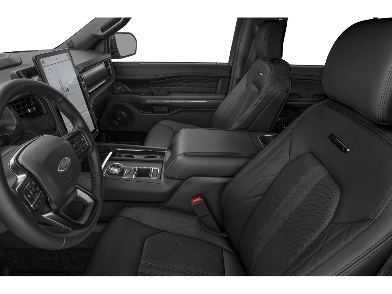 Equipment Group 600A Standard Package, 22 Speakers, 3rd row seats: split-bench, 4-Wheel Disc Brakes, ABS brakes, Active Park Assist 2.0 Removal, Adaptive suspension, Adjustable pedals, Air Conditioning, Alloy wheels, AM/FM radio, Auto High-beam Headlights, Auto-dimming door mirrors, Auto-dimming Rear-View mirror, Automatic temperature control, Black Roof-Rail Crossbars, Brake assist, Bumpers: body-color, Compass, Delay-off headlights, Driver door bin, Driver vanity mirror, Dual front impact airbags, Dual front side impact airbags, Electronic Stability Control, Emergency communication system: SYNC 4 911 Assist, Exterior Parking Camera Rear, Four wheel independent suspension, Front anti-roll bar, Front Bucket Seats, Front Center Armrest, Front dual zone A/C, Front fog lights, Front reading lights, Fully automatic headlights, Garage door transmitter, Genuine wood console insert, Genuine wood dashboard insert, Genuine wood door panel insert, Hands-Free Foot-Activated Liftgate Removal (DISC), Heated door mirrors, Heated front seats, Heated rear seats, Heated steering wheel, Htd/Ventilated Prem Lthr Front Captain's Chairs (DISC), Illuminated entry, Leather steering wheel, Low tire pressure warning, Memory seat, Navigation System, Occupant sensing airbag, Outside temperature display, Overhead airbag, Overhead console, Panic alarm, Passenger door bin, Passenger vanity mirror, Pedal memory, Power door mirrors, Power driver seat, Power Liftgate, Power moonroof, Power passenger seat, Power steering, Power windows, Radio data system, Radio: B&O Unleashed Sound System by Bang & Olufsen, Rain sensing wipers, Rear air conditioning, Rear anti-roll bar, Rear audio controls, Rear reading lights, Rear window defroster, Rear window wiper, Reclining 3rd row seat, Remote keyless entry, Second Row Power Windows Removal, Security system, SiriusXM w/360L, Speed control, Speed-sensing steering, Speed-Sensitive Wipers, Split folding rear seat, Spoiler, Steering wheel memory, Steering wheel mounted audio controls, SYNC 4 w/Enhanced Voice Recognition, Tachometer, Telescoping steering wheel, Tilt steering wheel, Traction control, Trip computer, Turn signal indicator mirrors, Variably intermittent wipers, Ventilated front seats, Voltmeter, Wheels: 22" 12-Spoke Polished Aluminum, and Wheels: 22" 6-Spoke Polished Aluminum. Recent Arrival!
