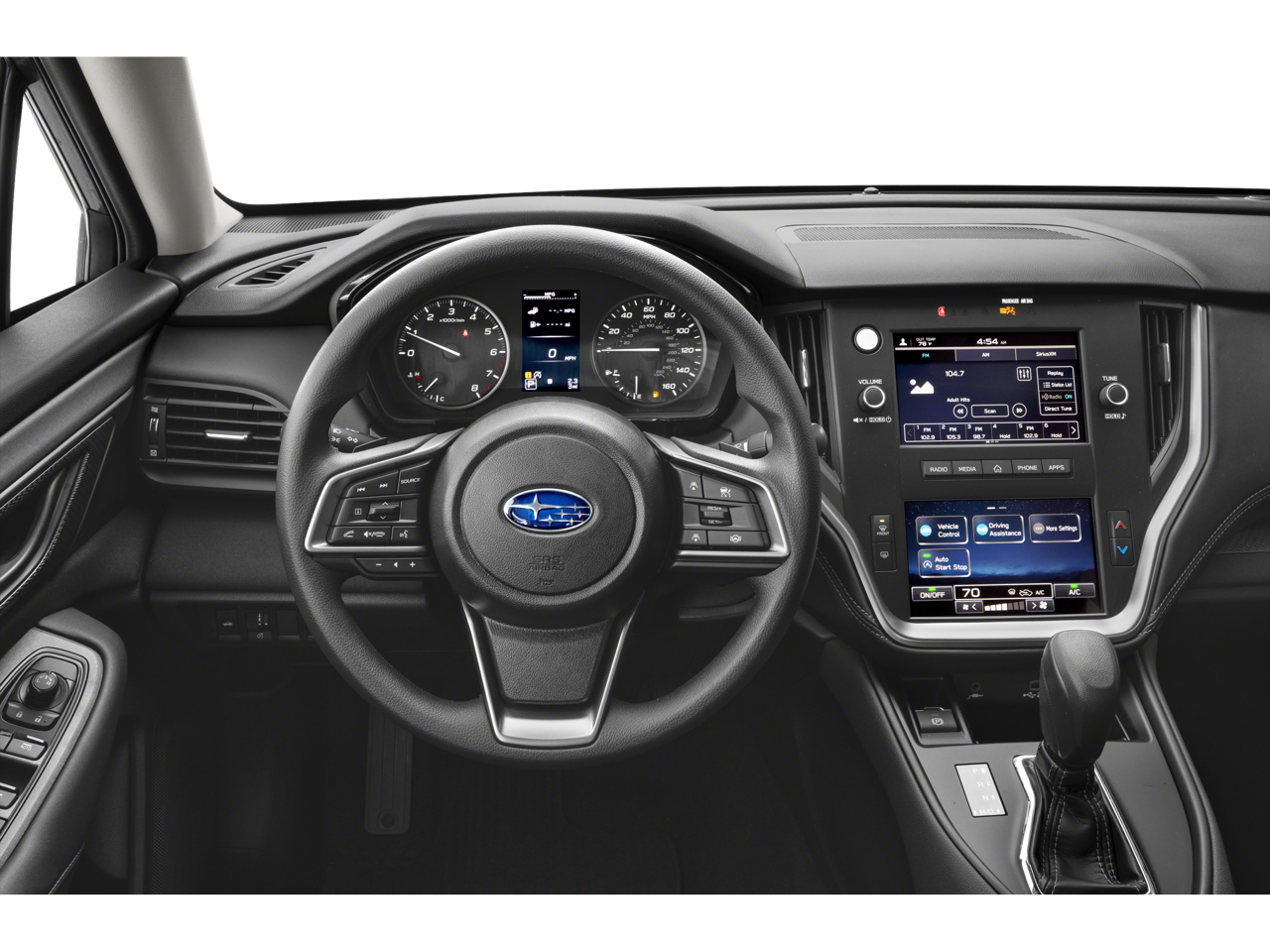Standard Model, 4 Speakers, 4-Wheel Disc Brakes, ABS brakes, Air Conditioning, All-Weather Floor Liners, Alloy wheels, AM/FM radio: SiriusXM, Anti-whiplash front head restraints, Auto High-beam Headlights, Automatic temperature control, Brake assist, Bumpers: body-color, Cloth Upholstery, Driver door bin, Driver vanity mirror, Dual front impact airbags, Dual front side impact airbags, Electronic Stability Control, Exterior Parking Camera Rear, Four wheel independent suspension, Front anti-roll bar, Front Bucket Seats, Front Center Armrest w/Storage, Front reading lights, Fully automatic headlights, Illuminated entry, Knee airbag, Low tire pressure warning, Occupant sensing airbag, Outside temperature display, Overhead airbag, Overhead console, Panic alarm, Passenger door bin, Passenger vanity mirror, Power door mirrors, Power steering, Power windows, Radio: Subaru STARLINK Dual 7.0" Multimedia System, Rear anti-roll bar, Rear seat center armrest, Rear window defroster, Remote keyless entry, Security system, Speed control, Speed-sensing steering, Split folding rear seat, STARLINK/Apple CarPlay/Android Auto, Steering wheel mounted audio controls, Tachometer, Telescoping steering wheel, Tilt steering wheel, Traction control, Trip computer, Variably intermittent wipers, and Wheels: 17" x 7.5J Aluminum-Alloy Black. Recent Arrival! 27/35 City/Highway MPG